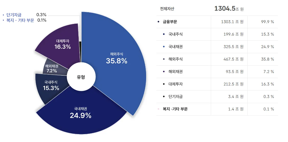 (짤은 우리나라에서 자산배분을 가장 잘하는 국민연금의 자산배분 현황)