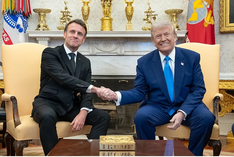 (실시간으로 전자를 증명하고 있는 마크롱과 후자를 증명하고 있는 트럼프)