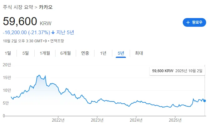 (5년동안 들고있어도 아직 마이너스인 카카오...)