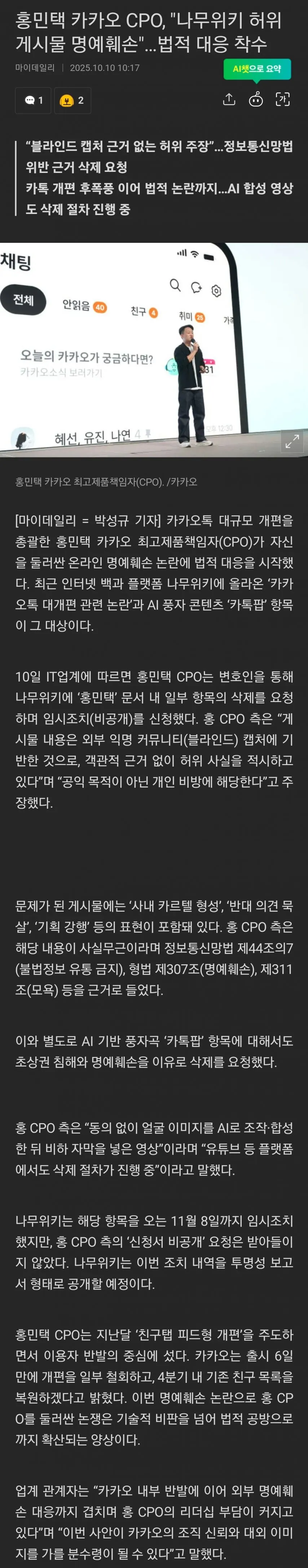 카카오톡 엄포: "업데이트 욕하는 인터넷 커뮤 전부 법적 고소할것"