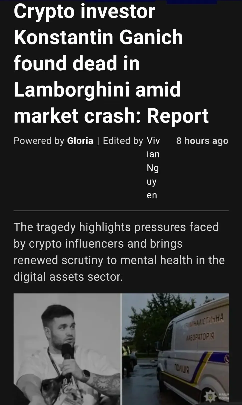 코인 폭락으로 암호화폐 투자가 람보르기니에서 사망한 채 발견
