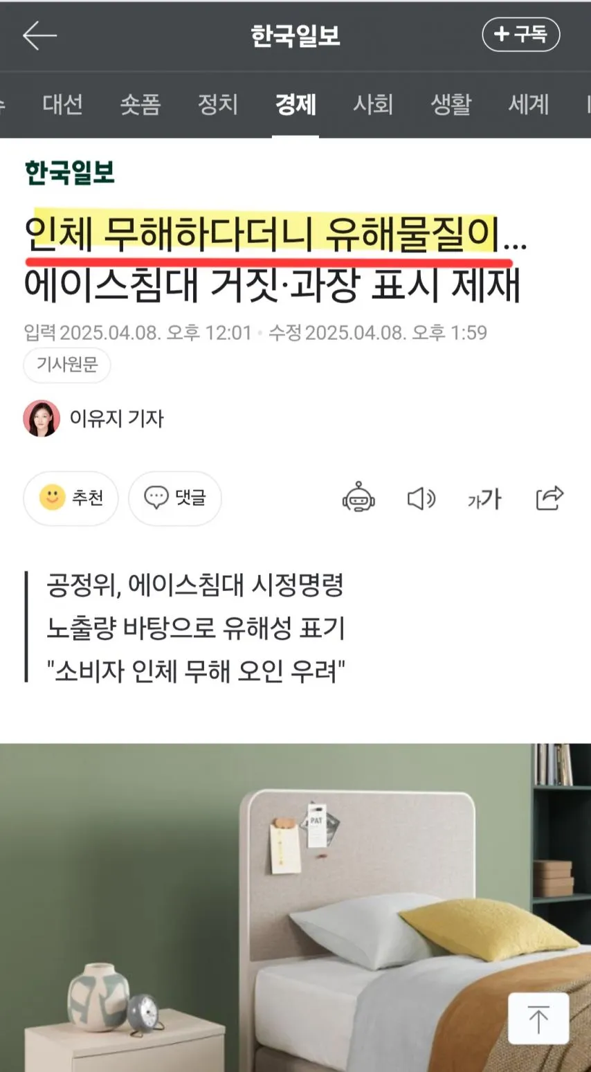 저는 지난 3년간 침대=과학이라는 대기업에서 가습기살균제 참사의 원인성분을 인체에 맞닿아 장시간 사용되는 매트리스에 "휘산"시켜 사용하고 있다는 사실을 알렸습니다.